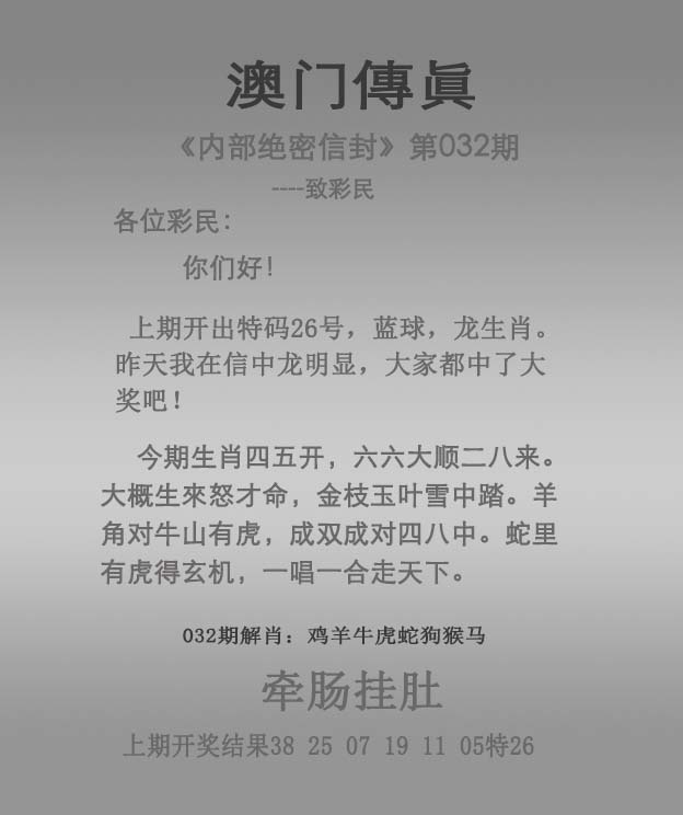 第032期:澳门官方【三肖复式连】独家料